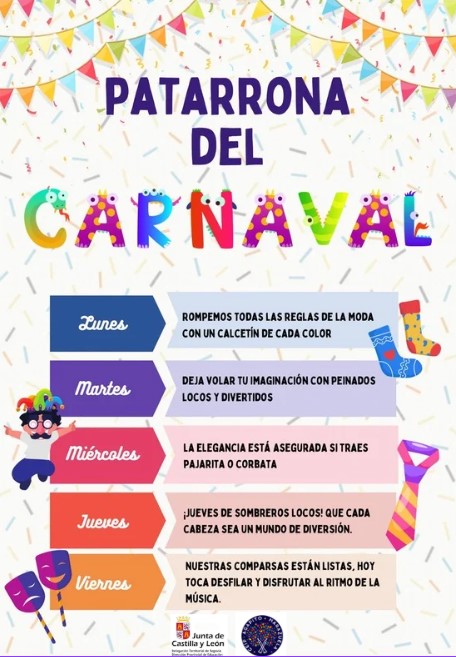 Pero como es tradición, durante esta semana deberemos seguir las consignas de DOÑA PATARRONA. Estad atentos para darle color a cada día, y todos juntos disfrutemos el último día.