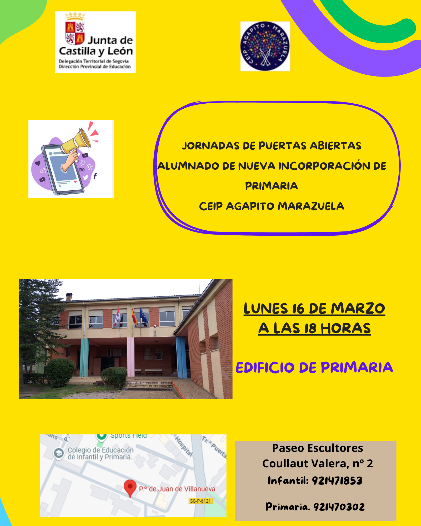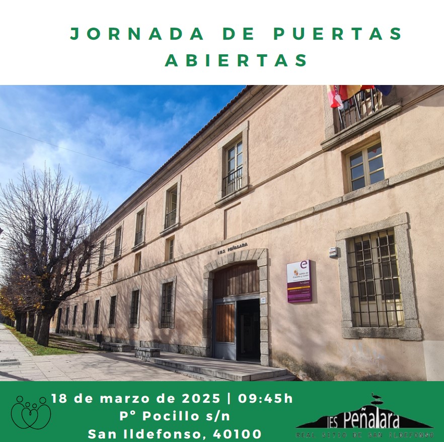 Familias de alumnado que cursa 6º de primmaria, os informamos que el próximo miércoles 18 de marzo, se realizarán las JORNADAS DE PUERTAS ABIERTAS del IES. Peñalara, en el Real Sitio de San Ildefonso.